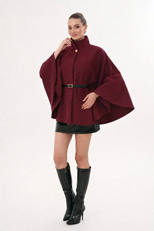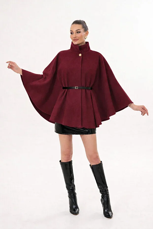 Bu kış gardırobunuzun vazgeçilmez parçası olmaya aday Bordo Kemer Detaylı Kadın Kaşe Kışlık Panço Modeli ile tanışın. Derin bordo rengi, sade ve şık bir görüntü sunarken kaşe kumaşın yoğun dokusu size sıcaklık ve dayanıklılık vaat eder. Uzun, akıcı kesimli panço tasarımı hareket özgürlüğünüzü kısıtlamadan zarif bir siluet yaratır; beldeki şık kemer detayı ise anında ince bir bel hatı verir.