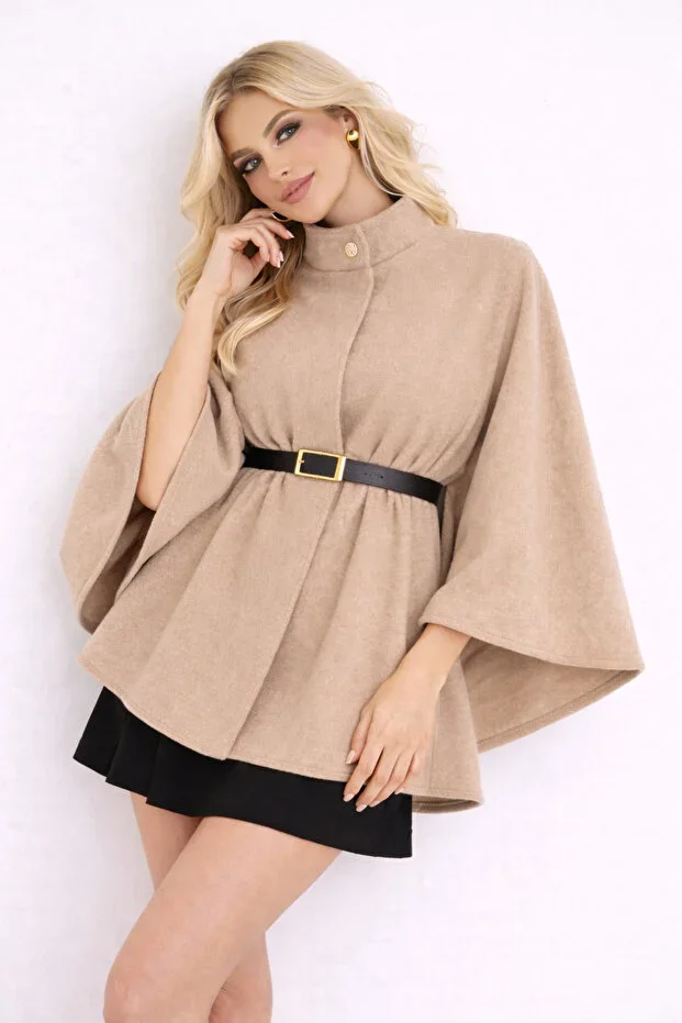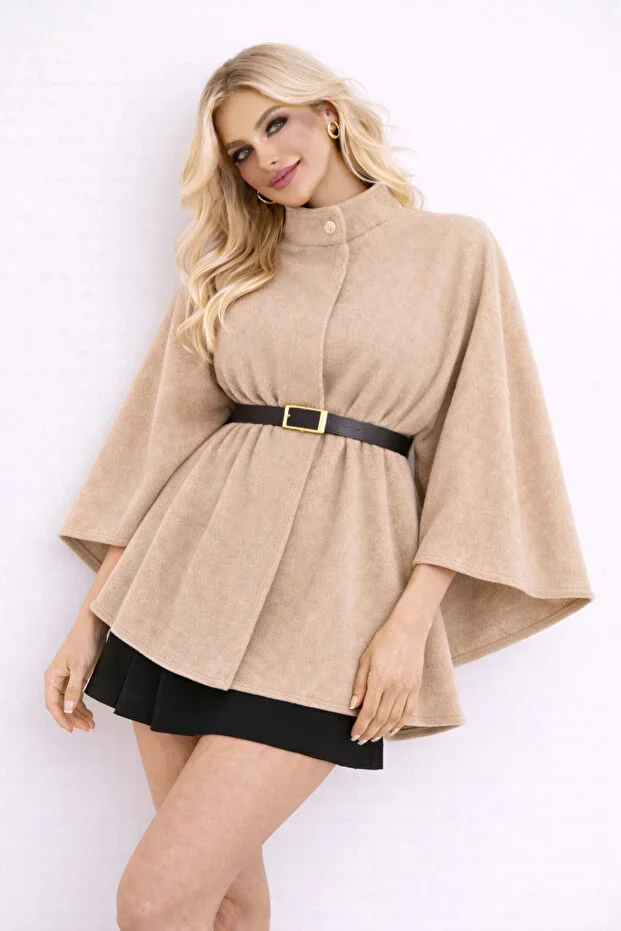 Zarif Kadın Kemerli Kışlık Kaşe Bej Panço, soğuk günlerde stilinizden ödün vermeden sıcak kalmanızı sağlayan bir parça. Klasik bej tonunun saflığıyla her kombine kolayca uyum sağlayan bu panço, günlük şehir hayatından ofise kadar geniş bir kullanım yelpazesine sahip. Günlük stilinizi bir adım öne taşıyan, sade ama etkileyici bir dokunuş arıyorsanız doğru yerdesiniz.