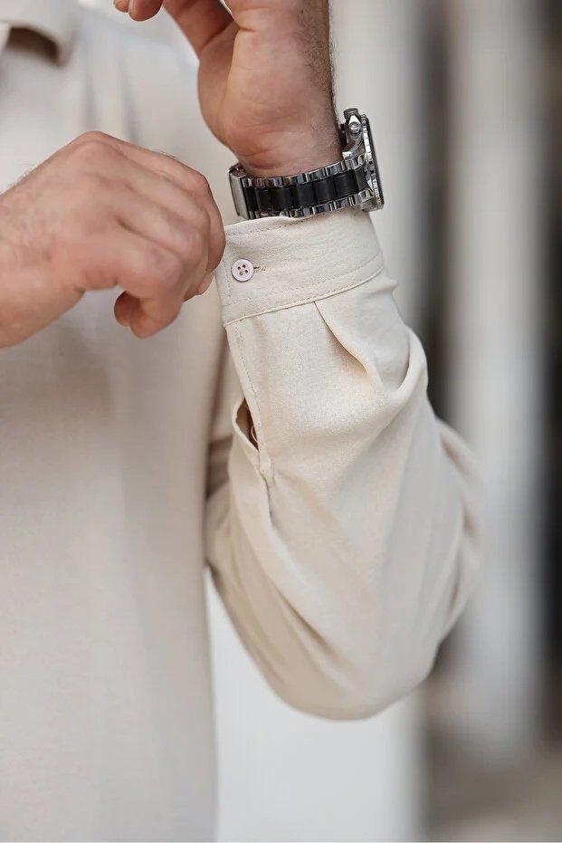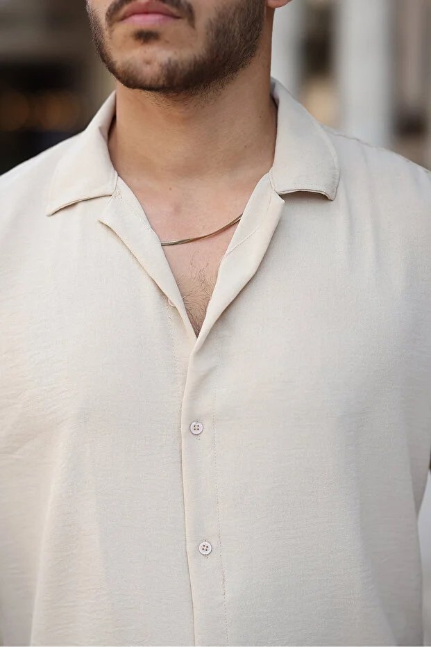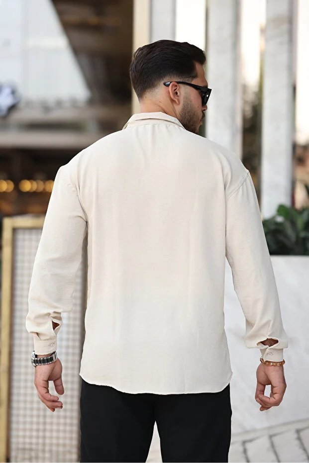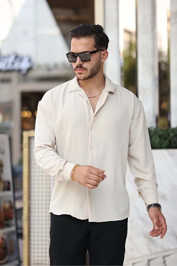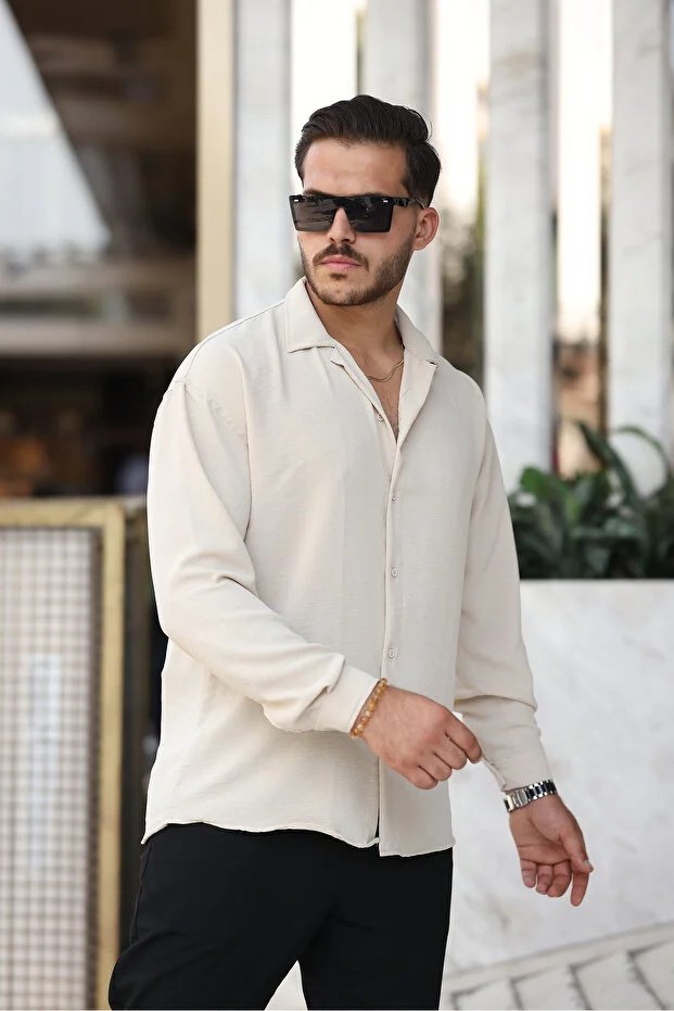 Bej renk; doğallığın, sadeliğin ve rafine şıklığın simgesidir. Göz yormayan yumuşak tonu sayesinde kombinlere ferah bir hava katar ve farklı renklerle kolayca uyum sağlar. Salaş formu ile klasik gömlek kalıplarından ayrılan bu model, modern ve özgür bir siluet sunar. Günlük hayatta rahatlığı ön planda tutan ancak stilinden ödün vermek istemeyen erkekler için ideal bir tercihtir.
