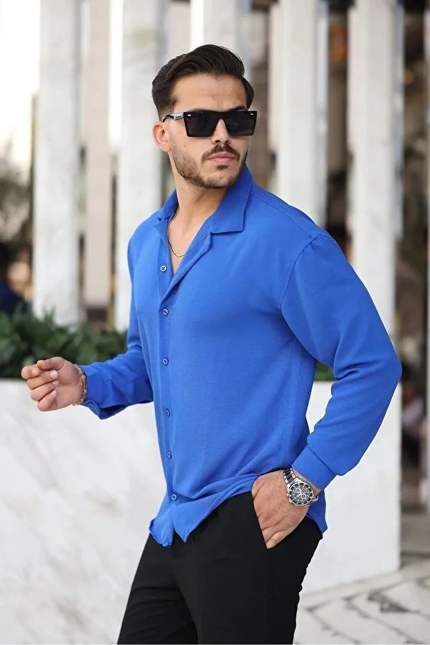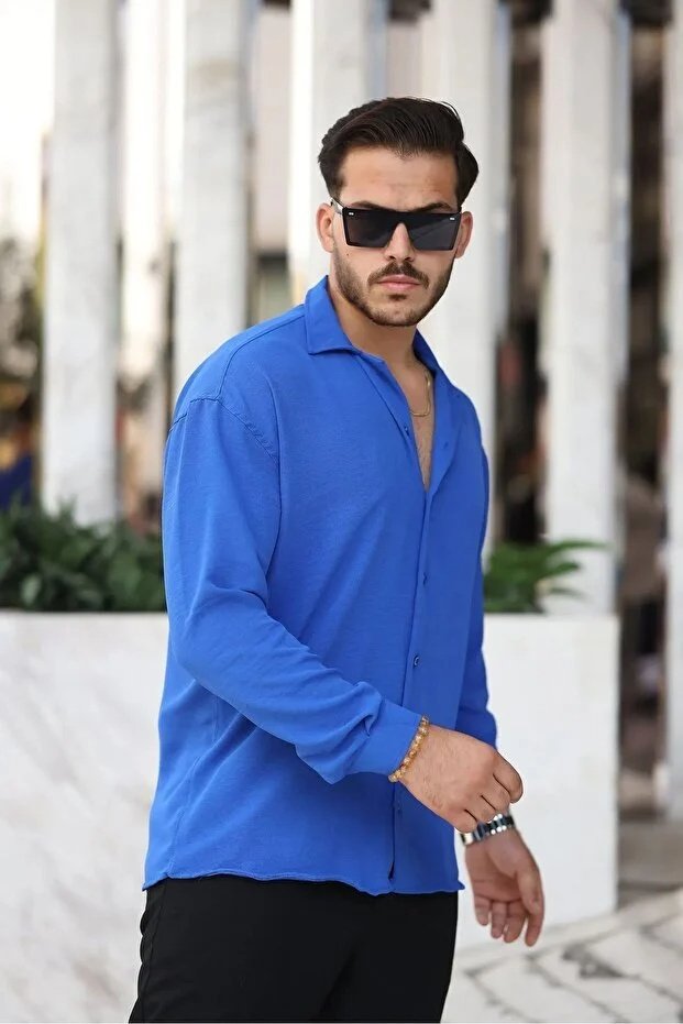 Saks oversize ayrobin gömlek, stiline renk ve hareket katmak isteyen erkekler için vazgeçilmez bir parçadır. Canlı rengi sayesinde sade kombinleri bile tek başına güçlü bir stile dönüştürür. Spor, casual ve smart casual kombinlerde rahatlıkla kullanılabilir.