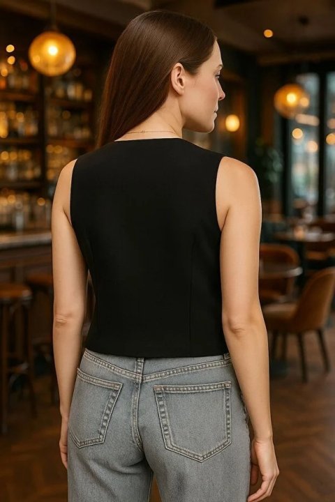 Kadın Siyah Astarlı Yelek – Slim Fit Kesim ile Klasik ve Modern Şıklık