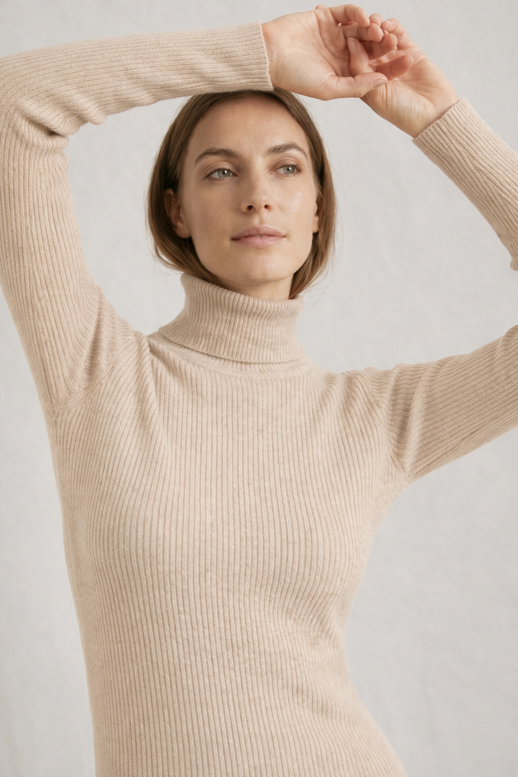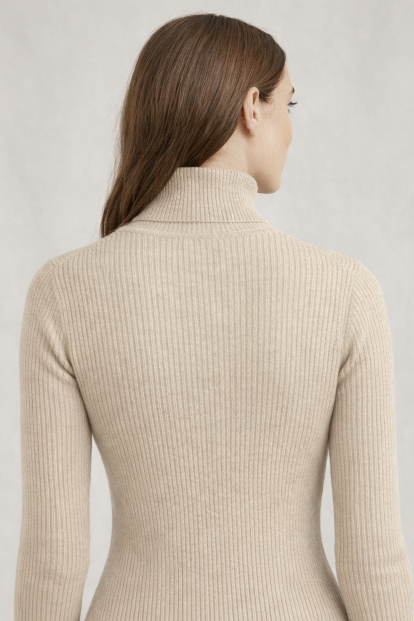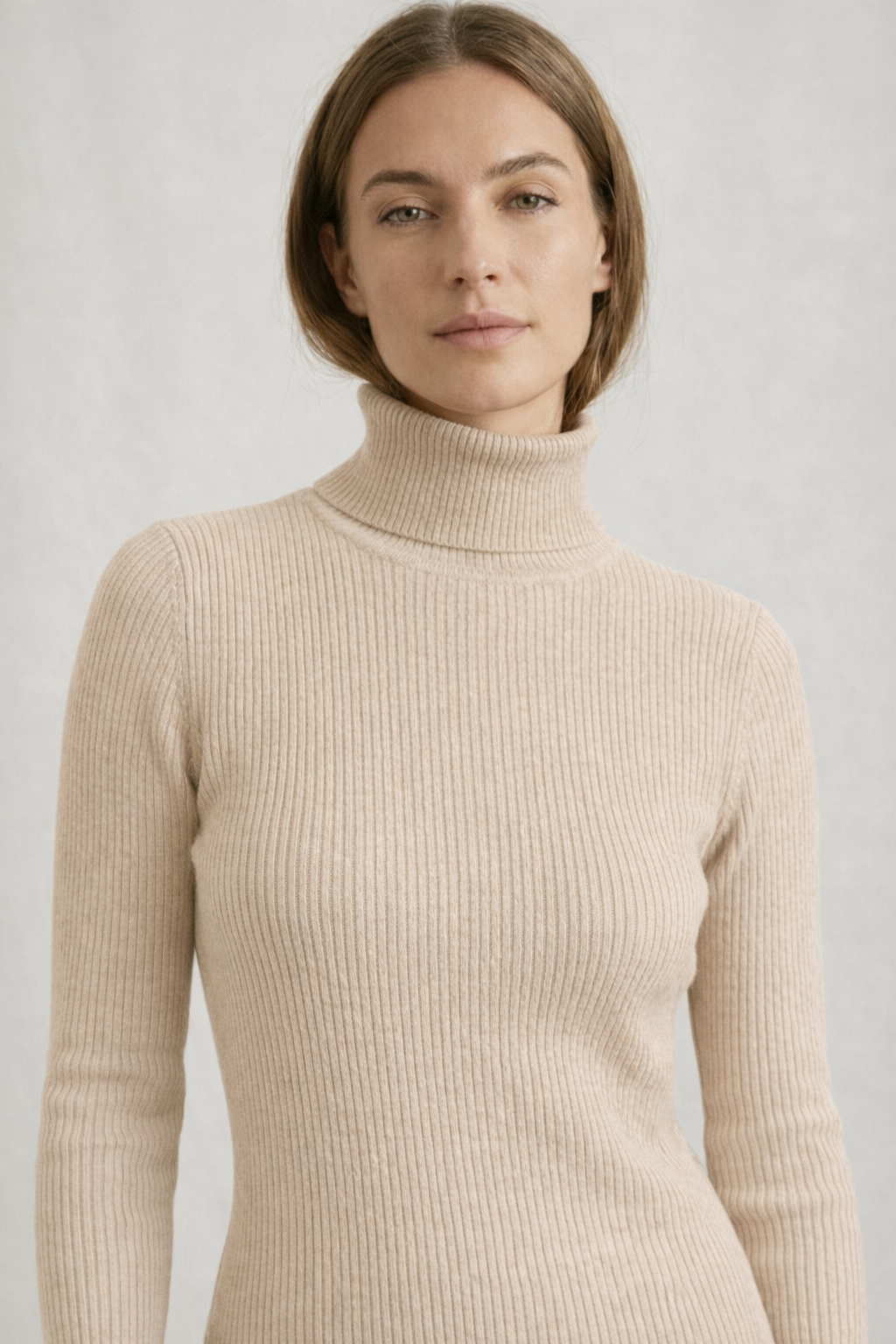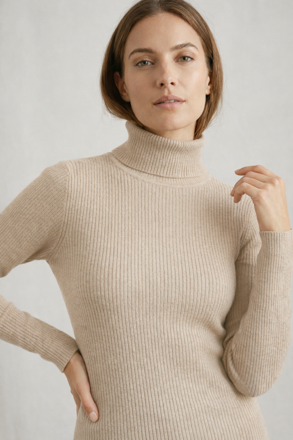 Kadın Bej Balıkçı Yaka Slim Fit Kaşkorse Kazak – Doğal Zarafet, Zamansız ve Şık Duruş