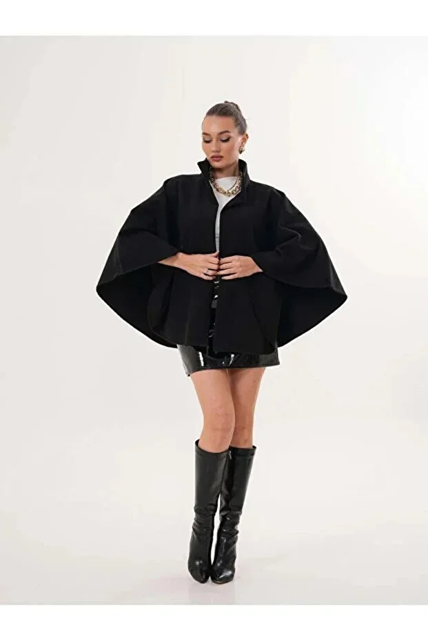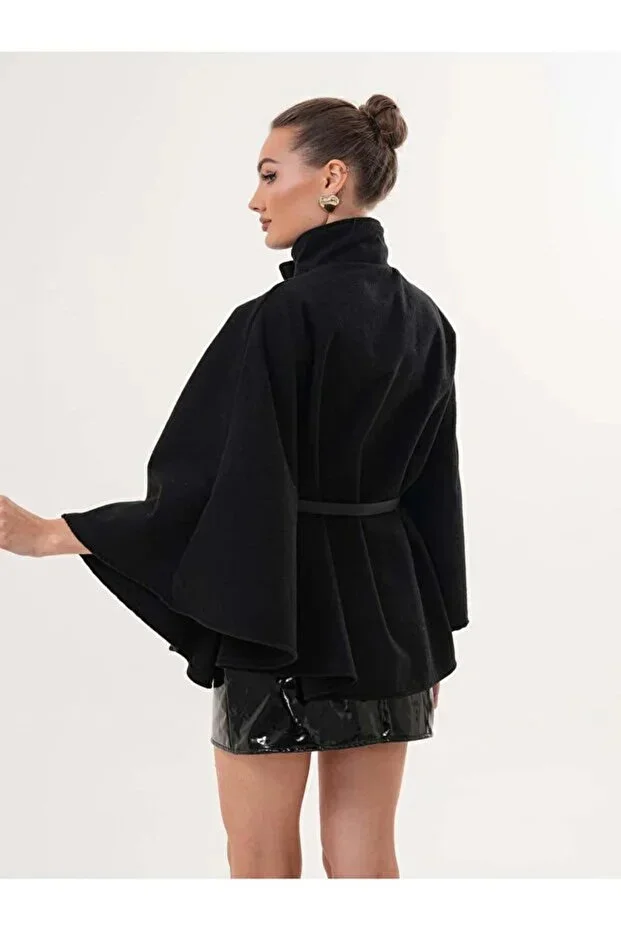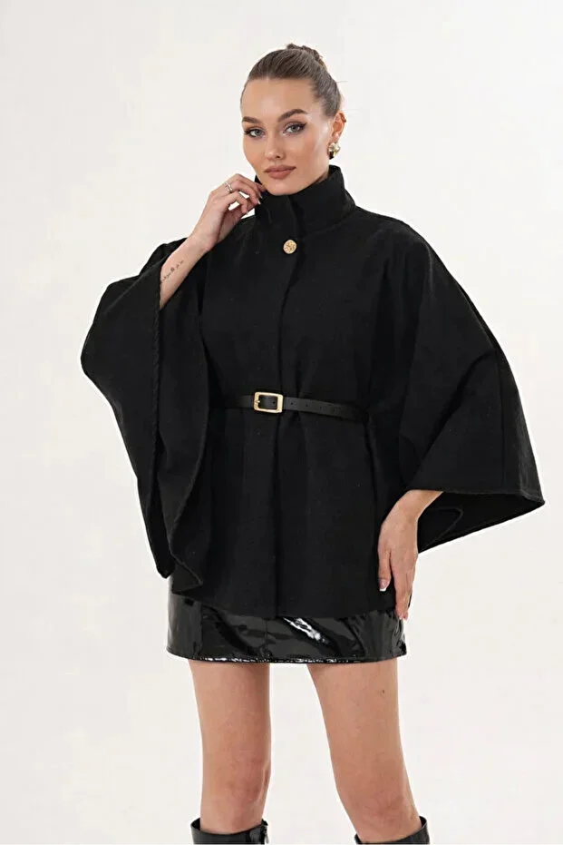 Kadın Siyah Kemer Detaylı Kaşe Panço, kış aylarının vazgeçilmez parçalarından biri olarak gardırobunuza konfor ve şıklığı aynı anda getiriyor. Bu panço, ince kaşe dokusu sayesinde hem zarif bir görünüm sunuyor hem de soğuğa karşı beklenmedik bir sıcaklık sağlıyor. Siyah rengi ile her kombine uyum sağlayan bu parça, ne çok iddialı ne de sadeleştiğinizde geri planda kalmayacağınız bir denge sunuyor. Günlük şehir yürüyüşlerinden ofis stiline, akşam buluşmalarından hafta sonu kahve molalarına kadar her durumda rahatlıkla kullanabileceğiniz bir dış giyim deneyimi vaat ediyor.